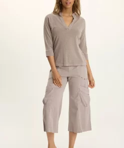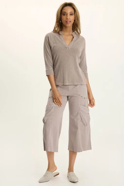 Soft slub jersey is once again a winner in this v-neck style featuring mid-length short sleeves. Flattering and functional, she’s a staple style waiting to happen!
