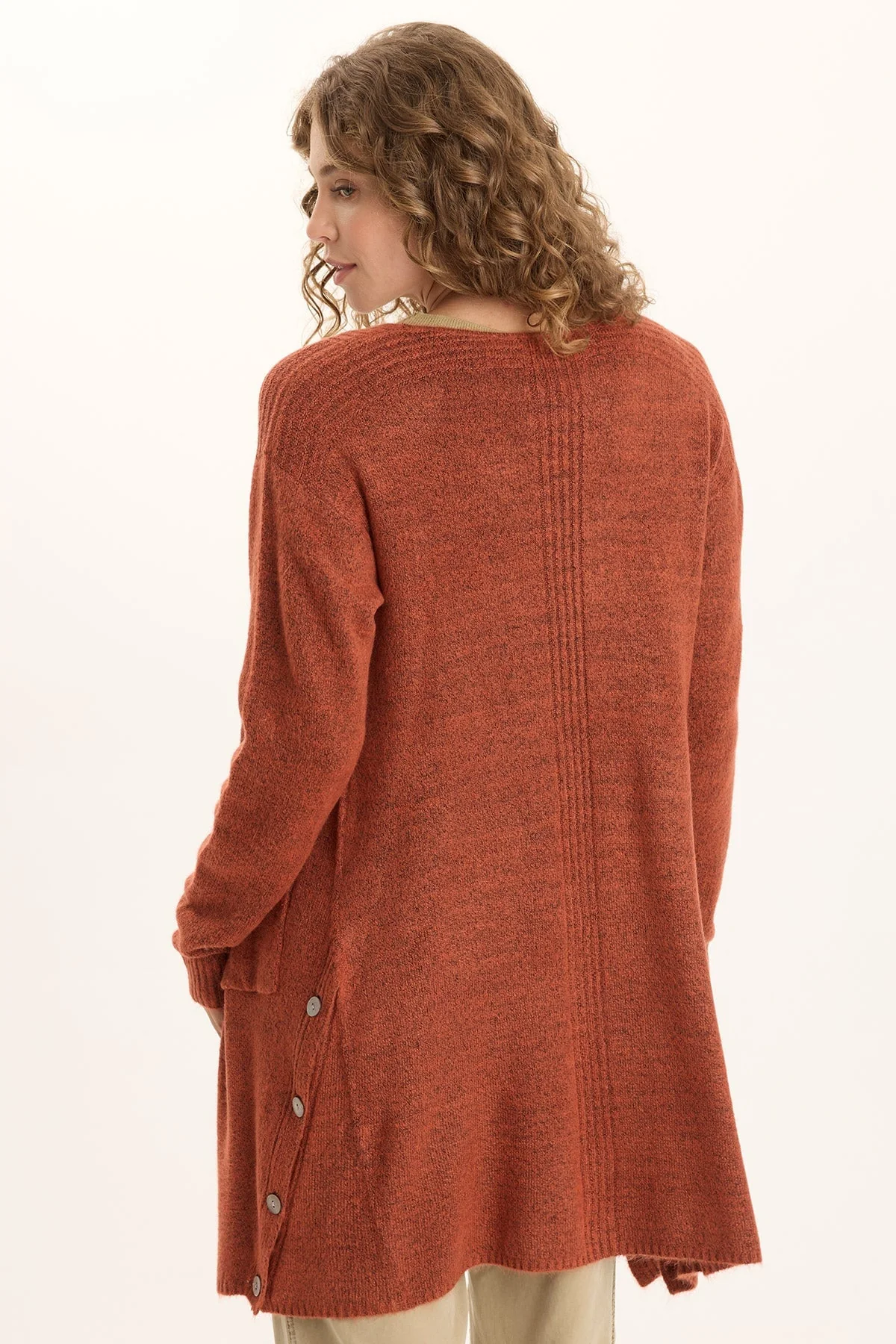 The ultimate cardigan has arrived! In our favorite plush sweater knit, this longline style is perfect for throwing over just about any outfit. Unexpected button details grace the back while cute, functional pockets make sure you can keep all your favorite things close by.