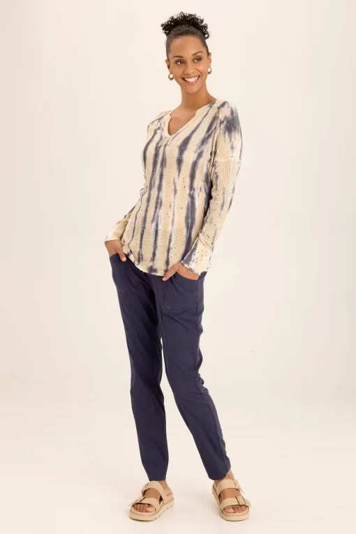 - Color Description: Splatter and Striped blue, beige and white tie dye