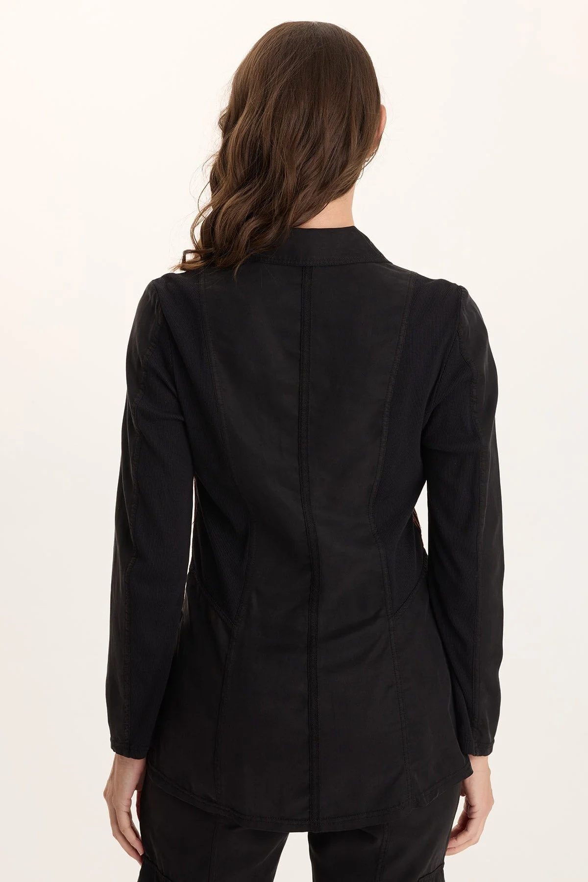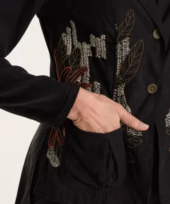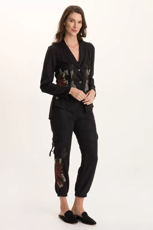 Artisan floral embroidery graces this style with a novel touch. An elongated two-button blazer in lightweight Soft Twill, Danski offers a flattering, polished look with functional details and an artful touch.