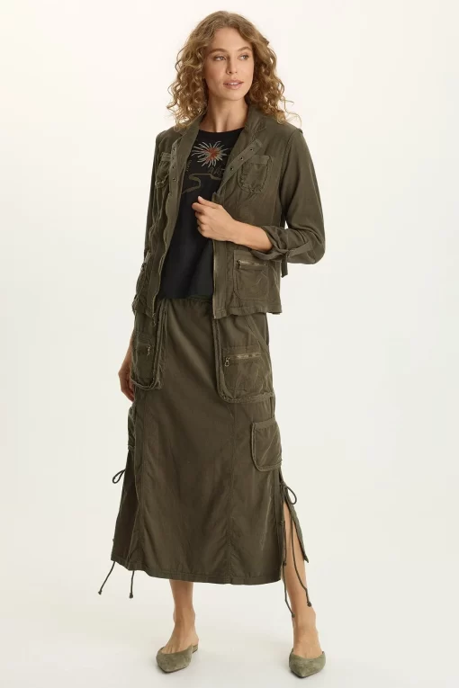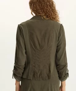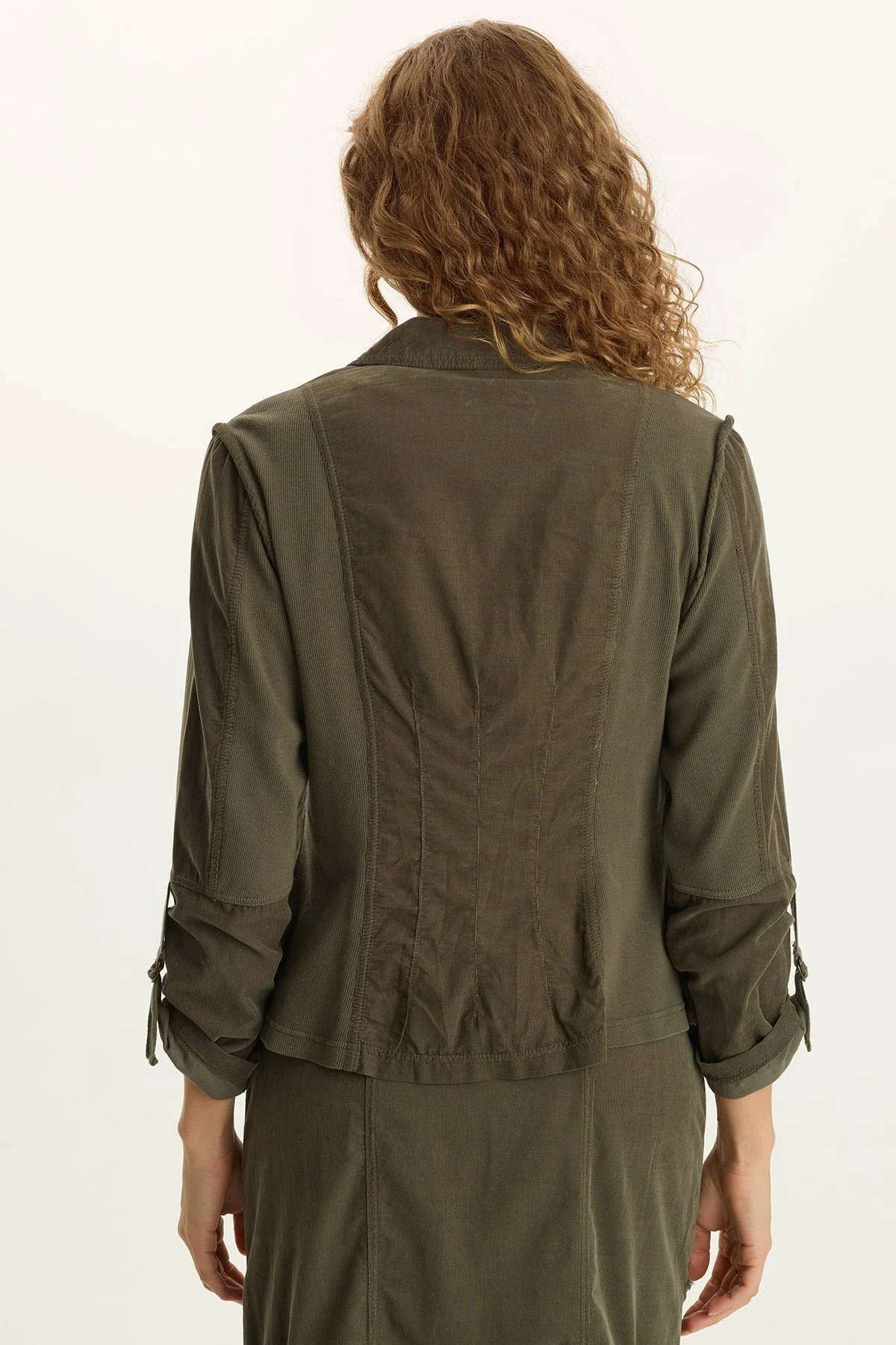 Details details details! Tabbed ruched sleeves, breast pockets, zippered pockets on either side, and eyelet hardware detail on the split collar maximize the star power of this cotton cord zip-up jacket. With a lightly contoured fit, Eino is great for lightweight layering or worn on its own as an eye-catching, unexpected top.