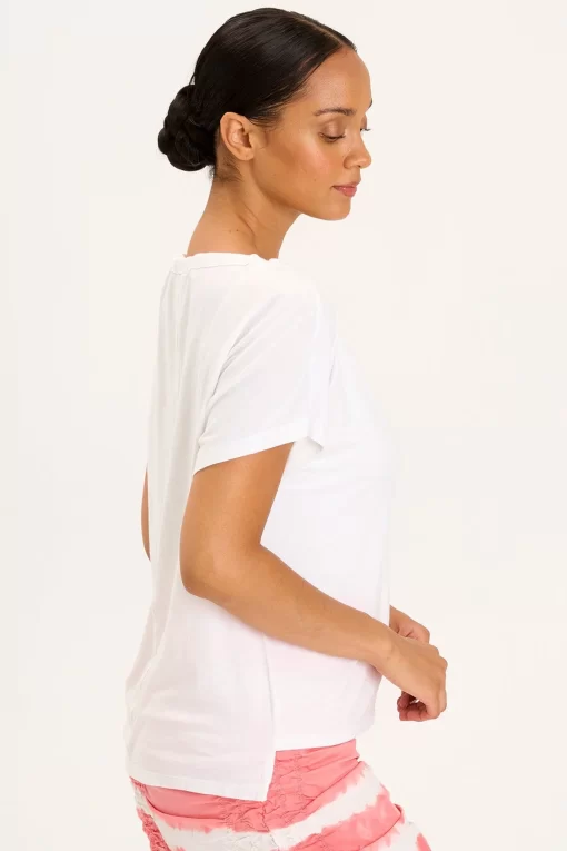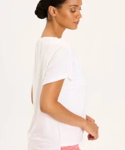A cinchable, adjustable drawstring neckline offers the unique opportunity to wear Exelda off the shoulder or on. A slightly boxy fit keeps things casual and cute, while stretch jersey ensures ultimate comfort.