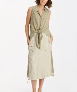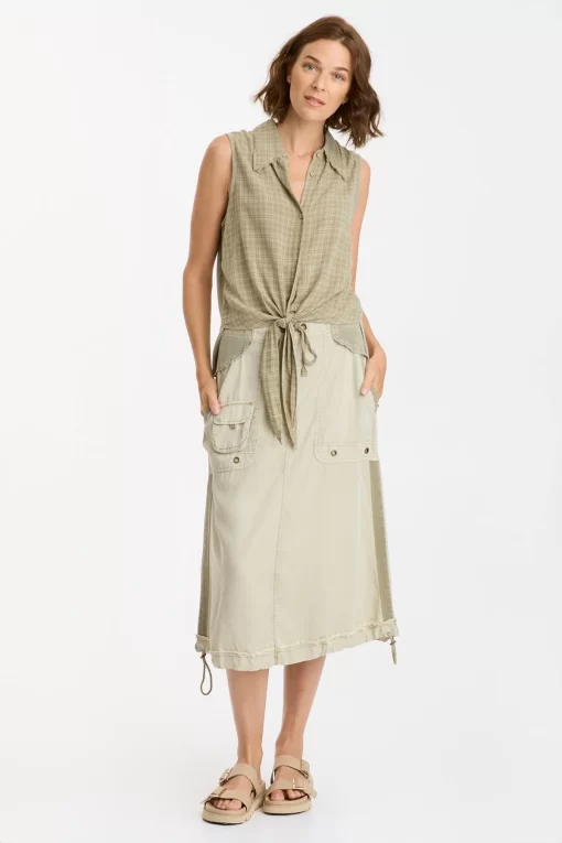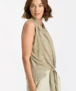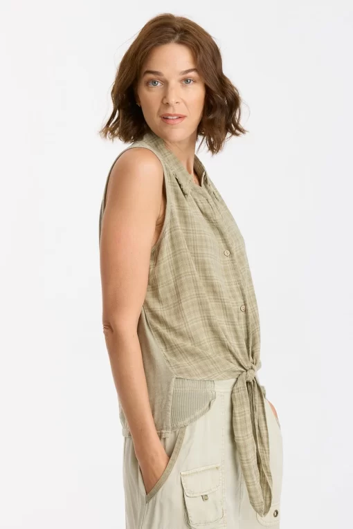 With a cheeky tie-front hem, contrasting jersey back panels, raw-edge collar details, coconut buttons, and a high-low hem, the Fleming Tie Tank is a showstopper in Tarley Plaid Voile.