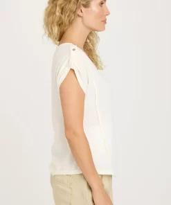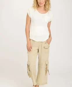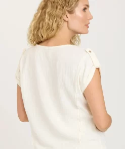 Tabbed short sleeves, a front breast pocket, a unique rounded raw edge hem, and slightly scooped neckline make up the Grigg Tee.