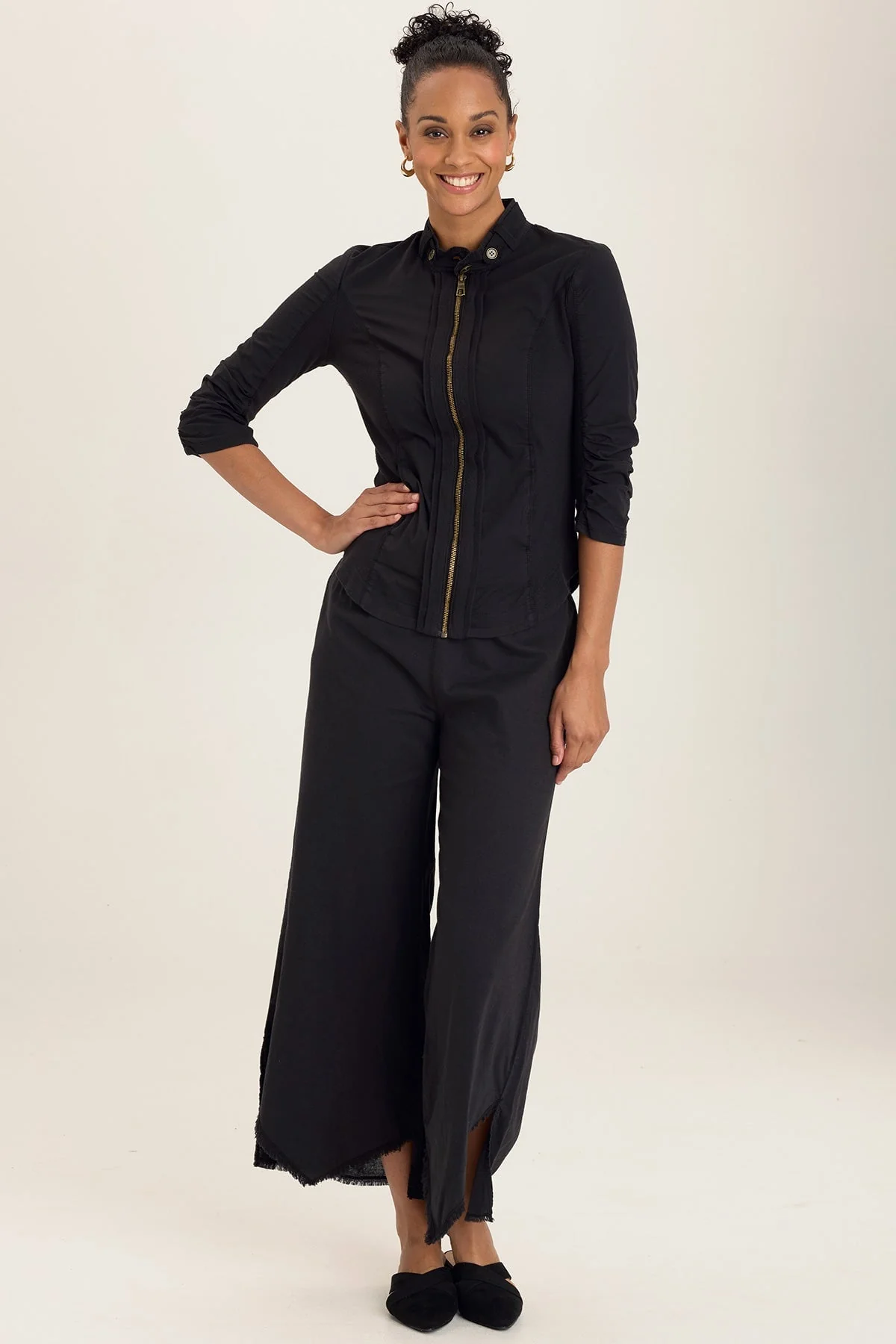 SheÕs back! A stylish, elevated, track jacket-inspired piece of lightweight outerwear, Janet is all for you! Featuring a stand collar with button details, rib inserts at the sides and at the 3/4 sleeves for an impeccable and comfortable fit, twill details at the zipper front, two front in-seam pockets, and ruching on the sleeves and back, Janet is as full of details as she is life!