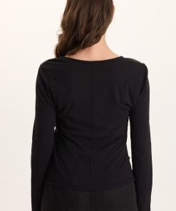 Two curved channels created with adjustable cords offer customizable ruching to this contrast-fabric style. A twill front body creates dynamic texture and movement-friendly stretch when paired with a Slub Jersey back, sleeves, and trim at the v-neck.