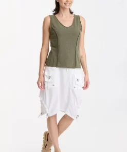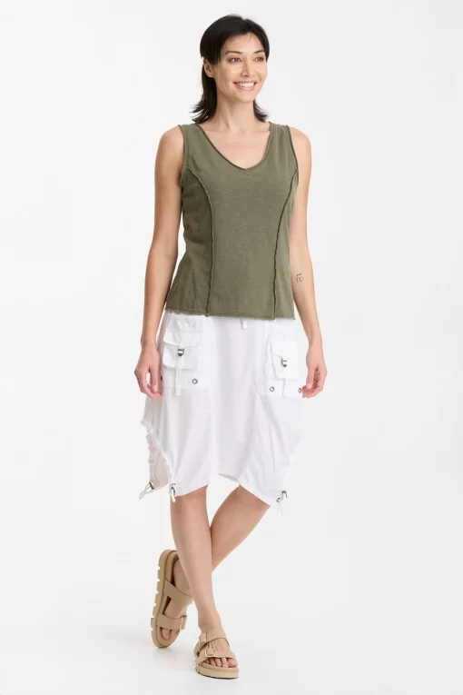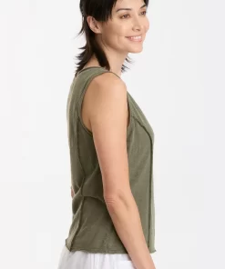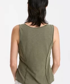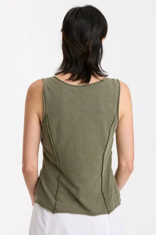 In slub jersey, the bra-friendly Laramie Tank features reversed stitched princess seams, a v-neck cut, and raw-edge details at the neck, hem, and armhole.