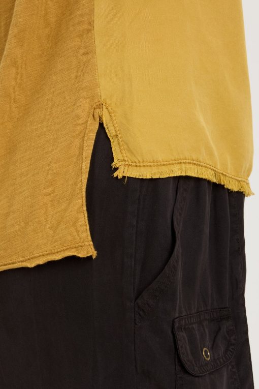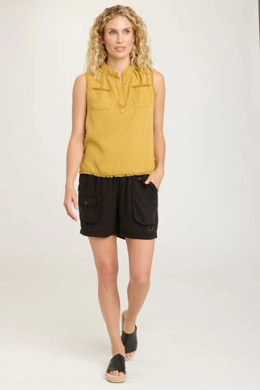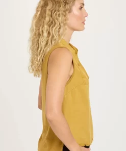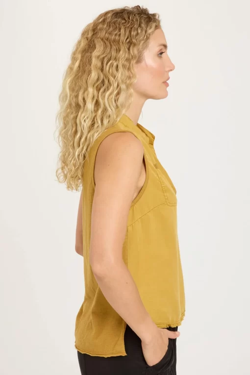 Small breast pockets, a stand collar, and raw-edge hemming bring subtle detail to the Mikkel Tank in our plush Soft Twill.