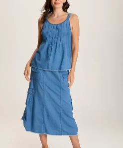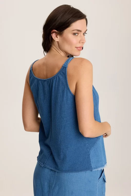 Soft volume on this pintucked-front tank allows for a roomy yet curve-flattering silhouette. A raw-edge hem brings out the best in the ruggedly-inspired Indigo Twill.