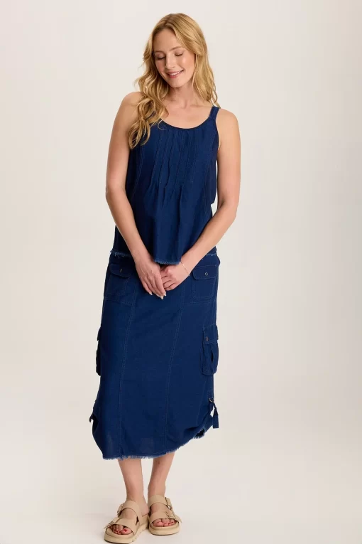 Soft volume on this pintucked-front tank allows for a roomy yet curve-flattering silhouette. A raw-edge hem brings out the best in the ruggedly-inspired Indigo Twill.