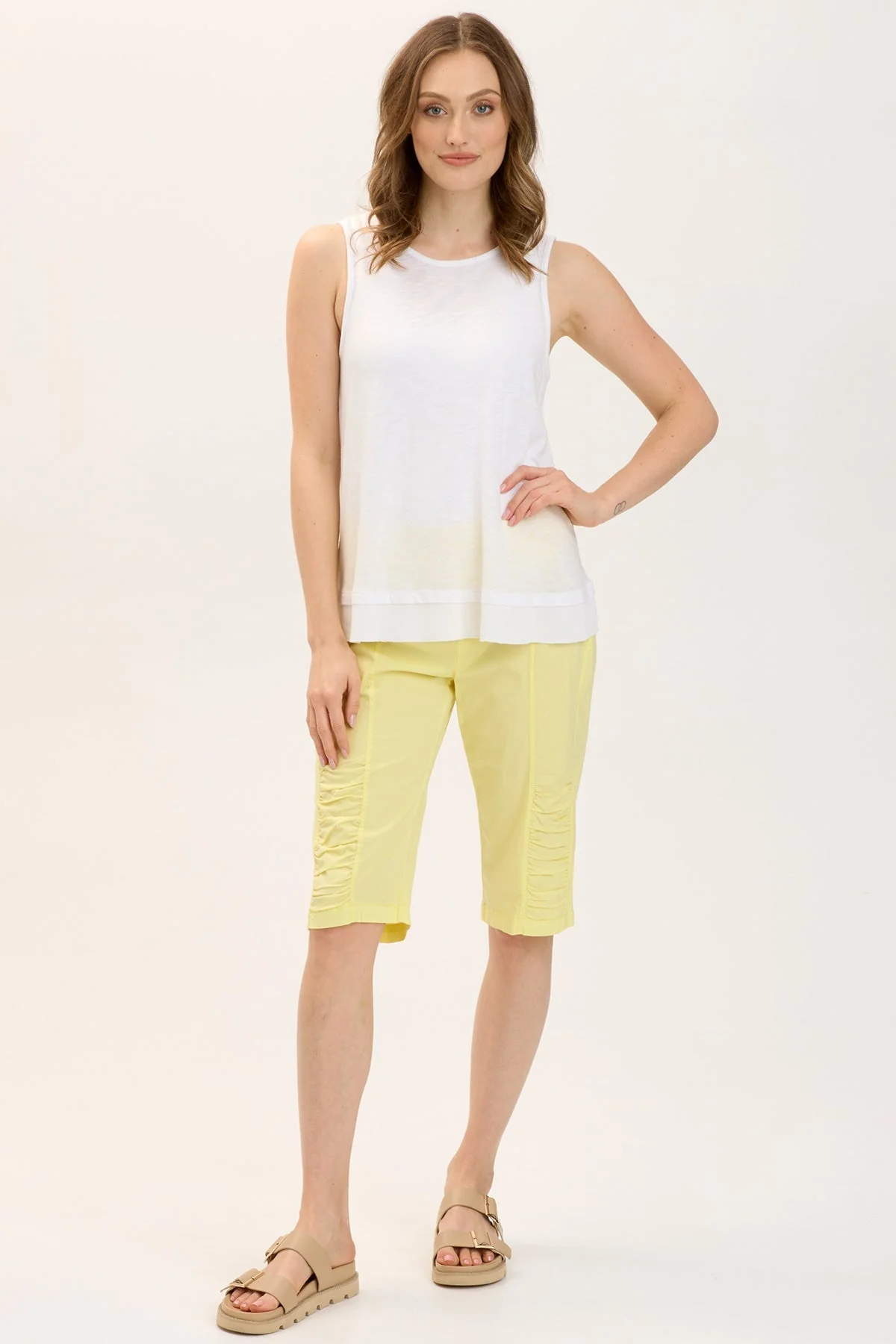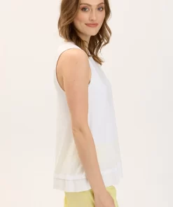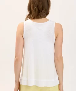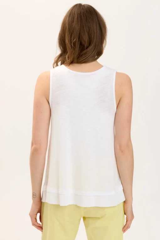 This tank top features an A-line silhouette, bra friendly straps, and a rib insert at hemline.