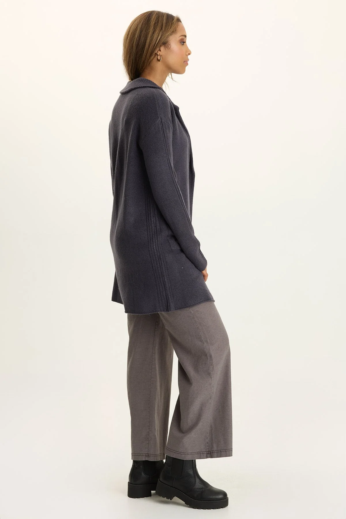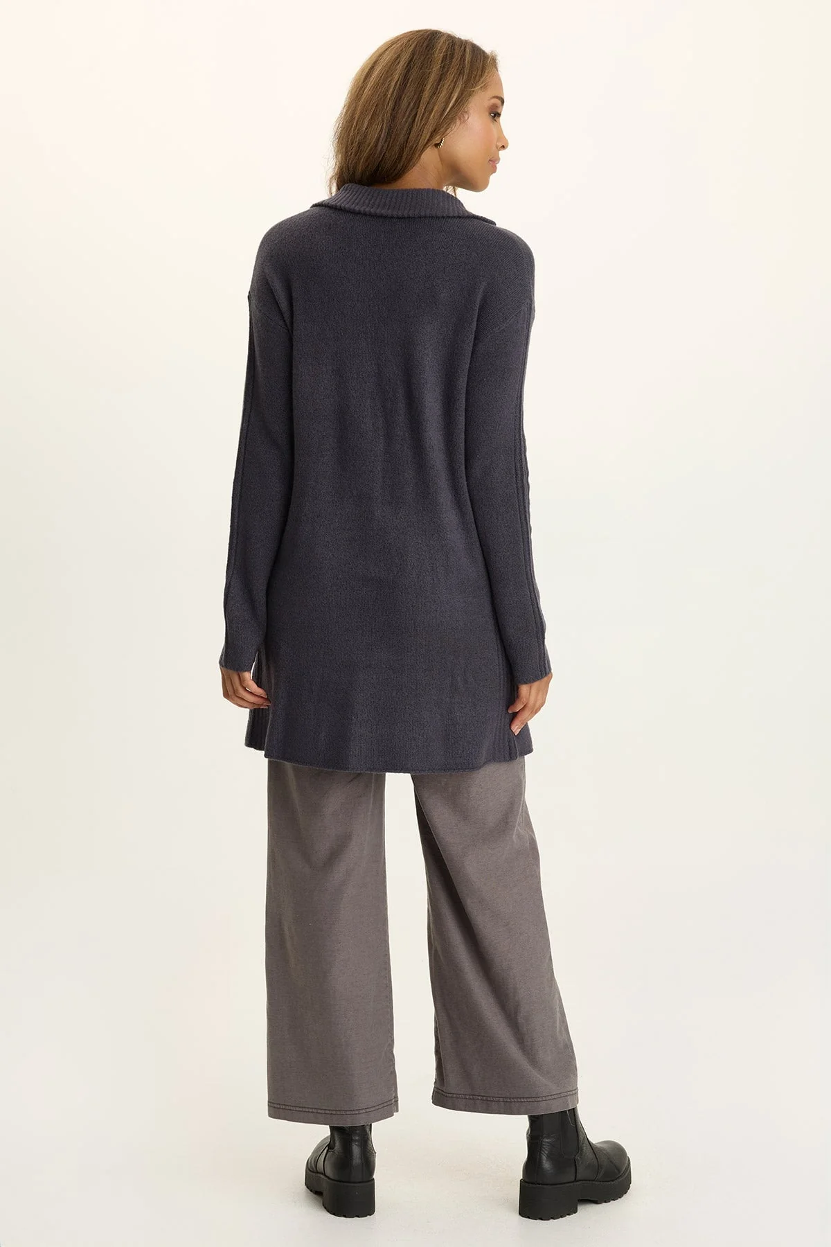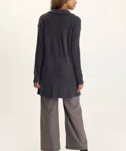 With striped trim down the arms, classic side pockets, and a plush lapel, this button-up longline cardigan is anything but your grandpa’s sweater!