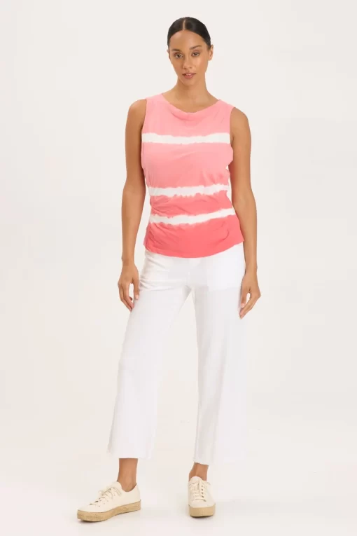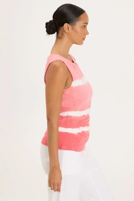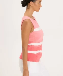 - Color Description: White striped vibrant coral tie dye