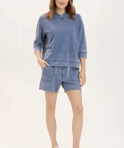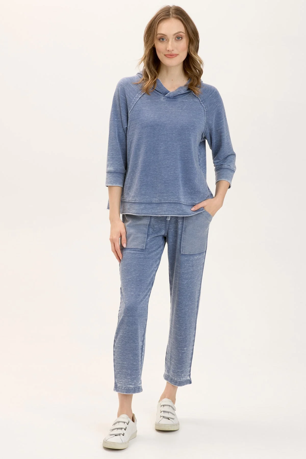 This lush burnout terry hoodie features 3/4 raglan sleeves, a hood, and a relaxed fit silhouette.