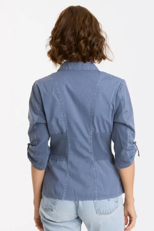 Made of our premium poplin, a classic collar graces this form-fitting jacket. Wexel features an antique brass ring pull zipper, twill tape details on the buckled cargo pockets and antique brass eyelet details throughout. Also featuring contrasting panels at the front/back waist and under the sleeve for maximum flexibility.