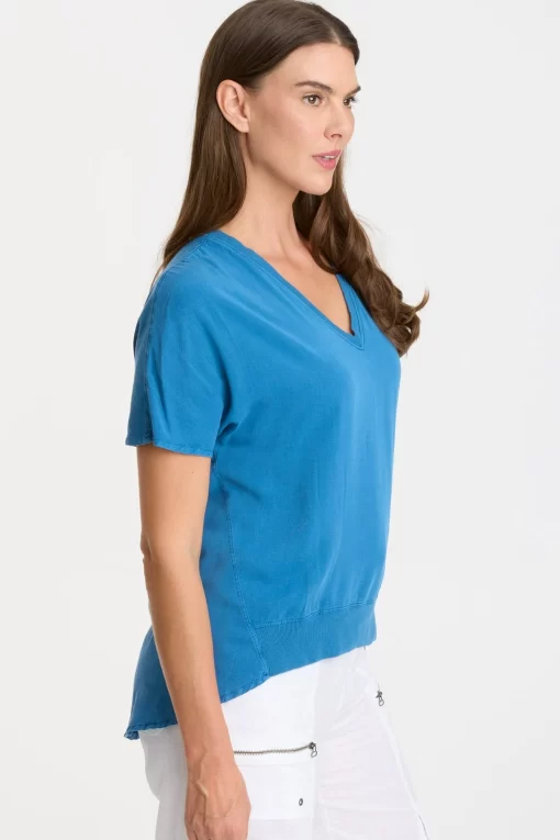 Made this time in Taissa Twill, ClaraÕs v-neck cut, dolman sleeves, pitched forward side seams, contrasting back upper panel, rib finish at the neck and front hem, and functional back placket with buttons make this top a go-to in your daily wardrobe.